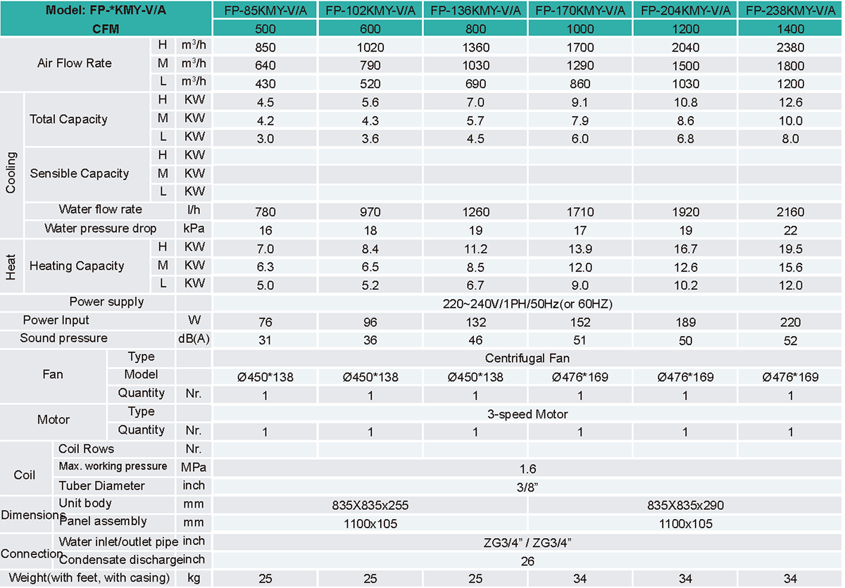 High efficiency circular coil are made of copper tubes and high exchange surface area aluminum blue fins. With built-in EEV, external EEV is optional.