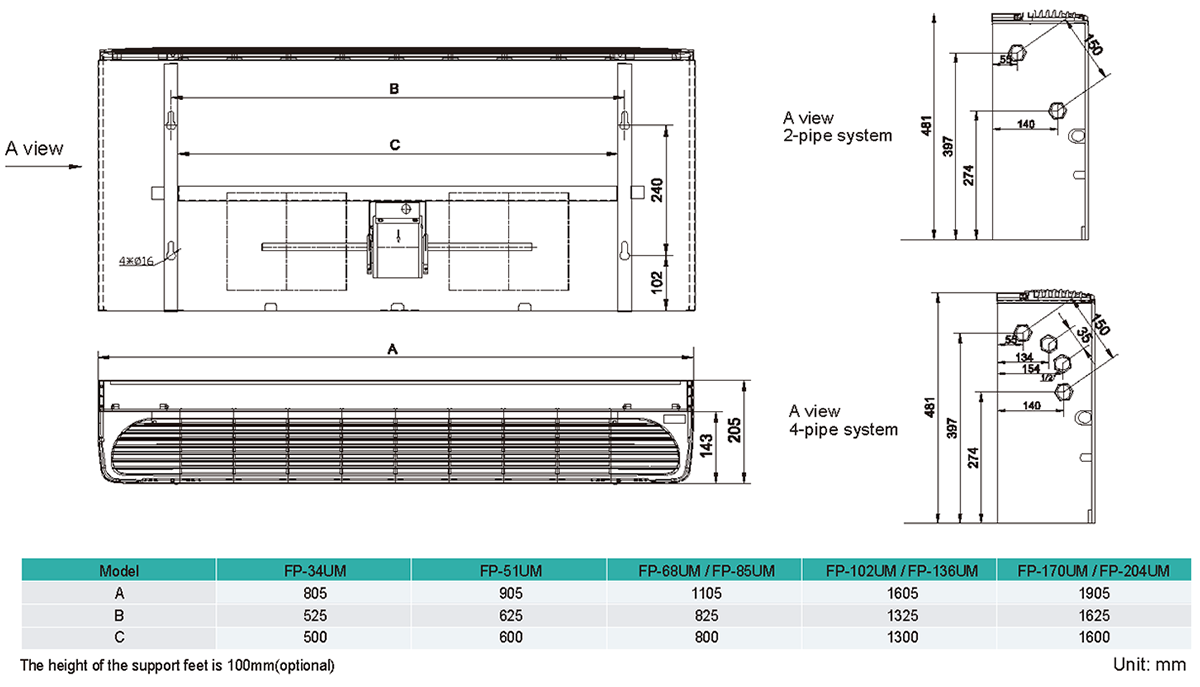 L: Left pipe connection(facing the air outlet)