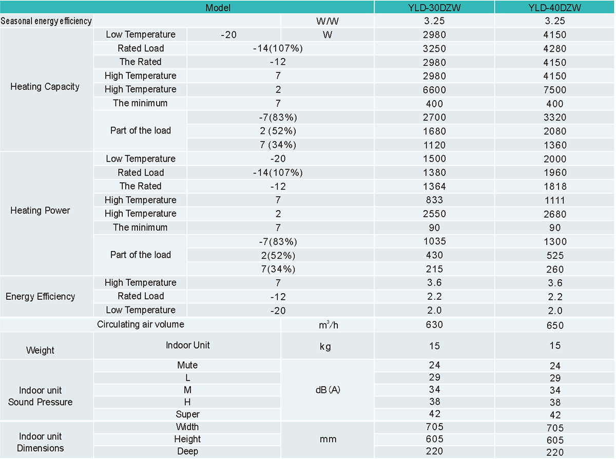 Through the reliability design, the unit can keep the heating capacity with no attenuation when the outdoor temperature is -20oC.